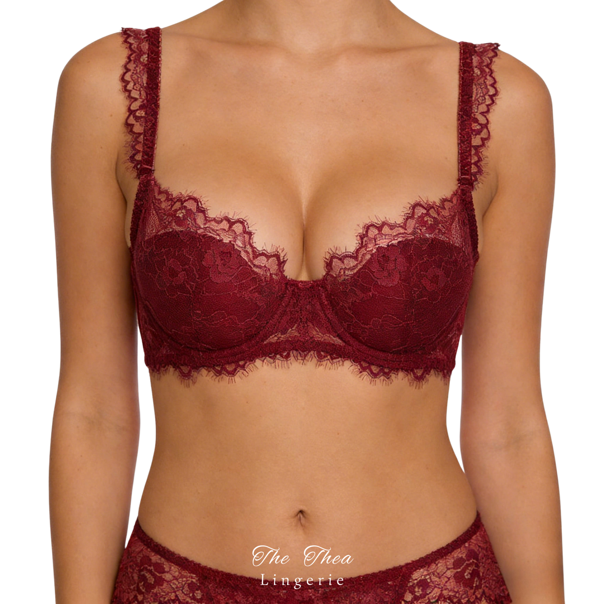 French Sexy Thin Cotton Transparent Lace Anti-Sagging Demi Bra Set