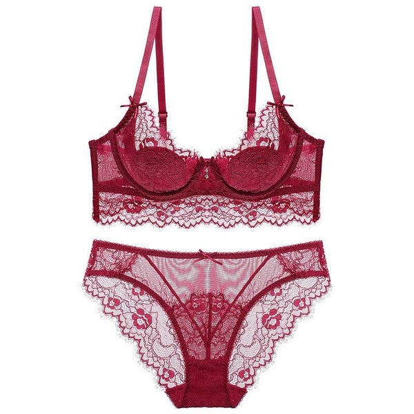 Sexy Ultra-Thin Lace Side Support Balconette Bra Set