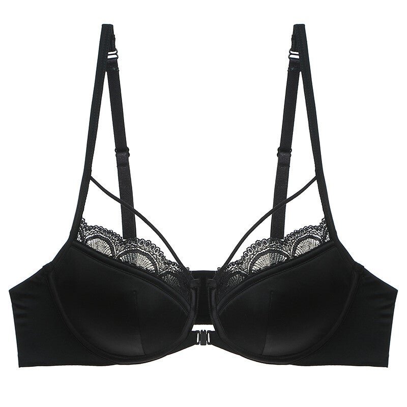 French Sheer Satin Front Closure Backless Lace Anti-Sagging Lifting Sexy Underwired Balconette Bra