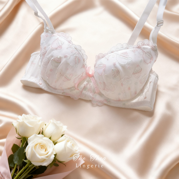 "Afternoon Tea" Embroidery Sexy Cute Thin Cup Push-Up Underwired Bra Set