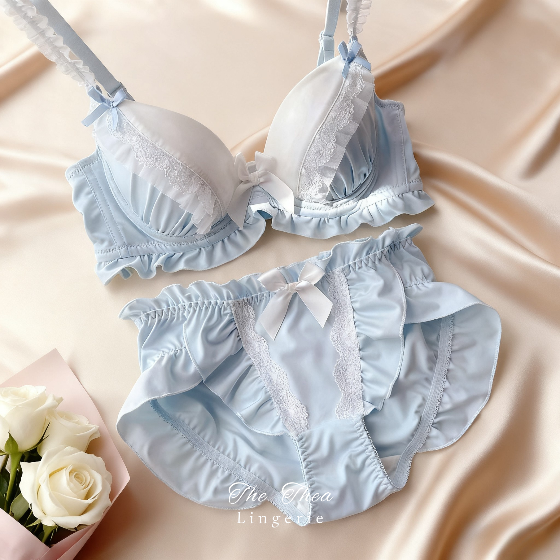Ruffled Sexy Cute Thin Cup Push-Up Underwired Bra Set