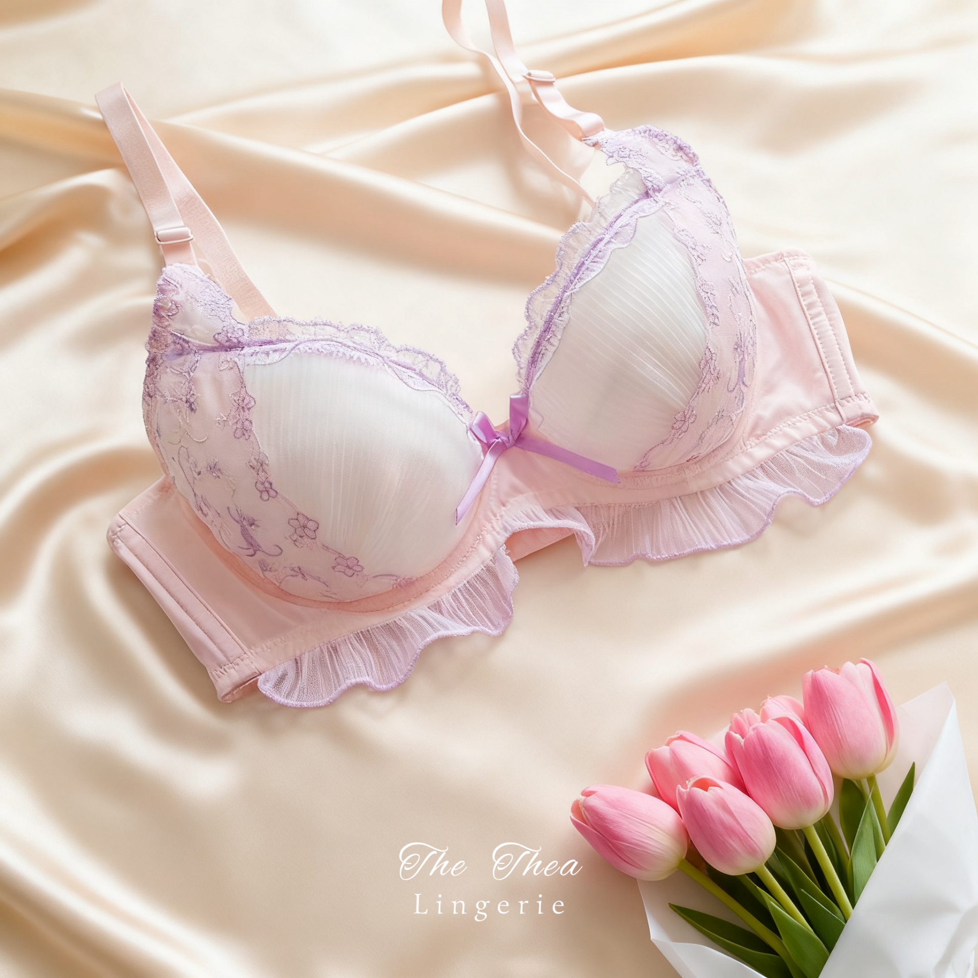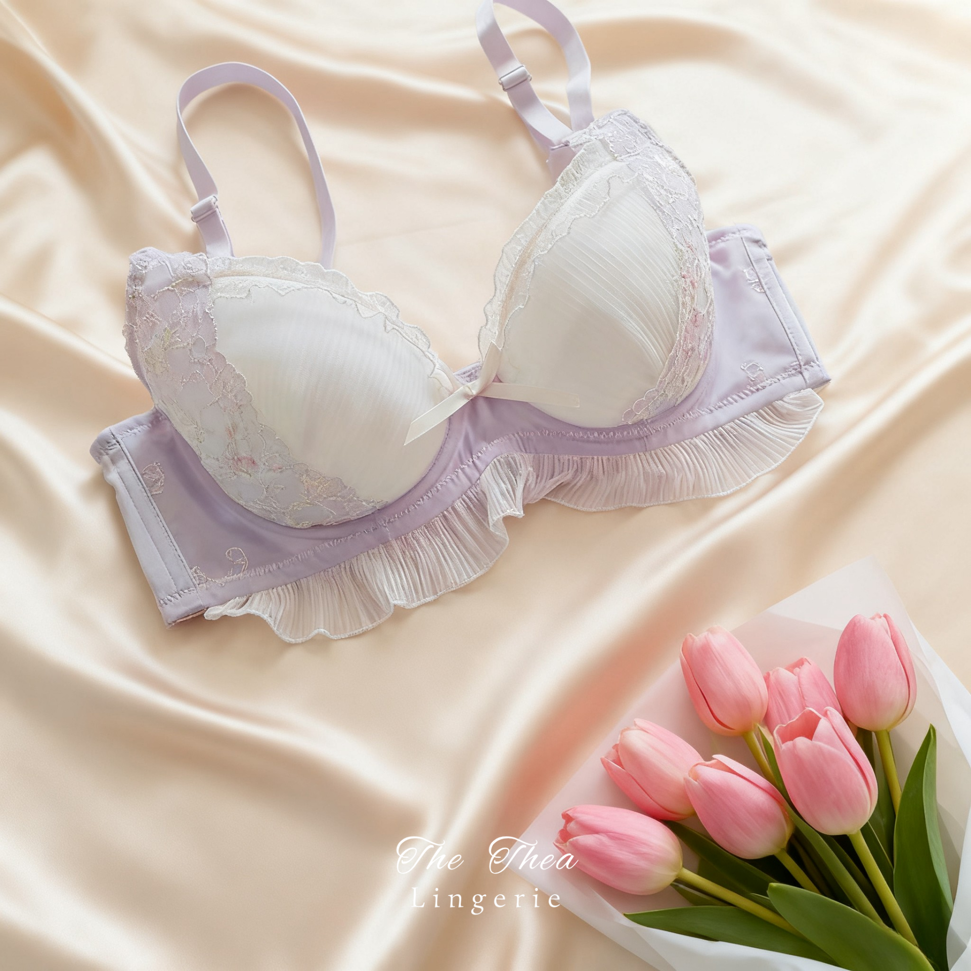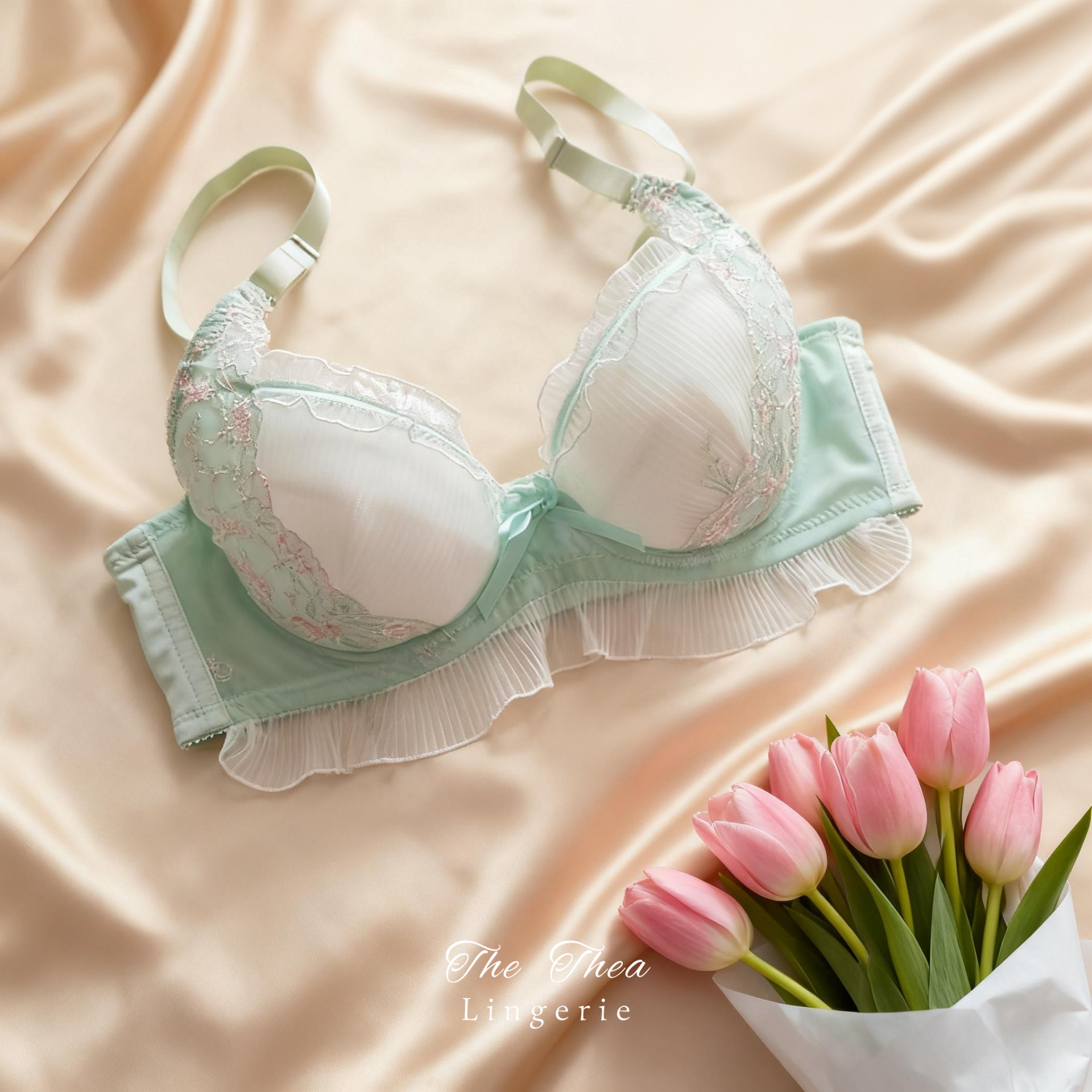 Ruffled Sexy Cute Embroidered Thin Cup Push-Up Underwired Bra Set