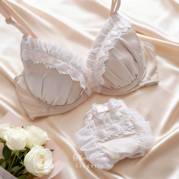 Sweet Embroidered Lace Deep V Thin Cup Underwired Plunge Bra Set