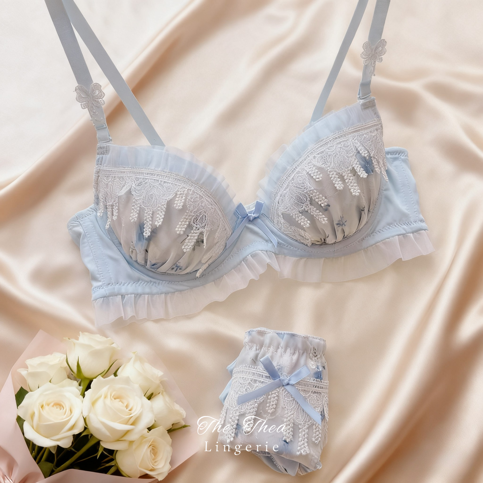 Tassel Ruffled Sexy Cute Thin Cup Push-Up Underwired Bra Set