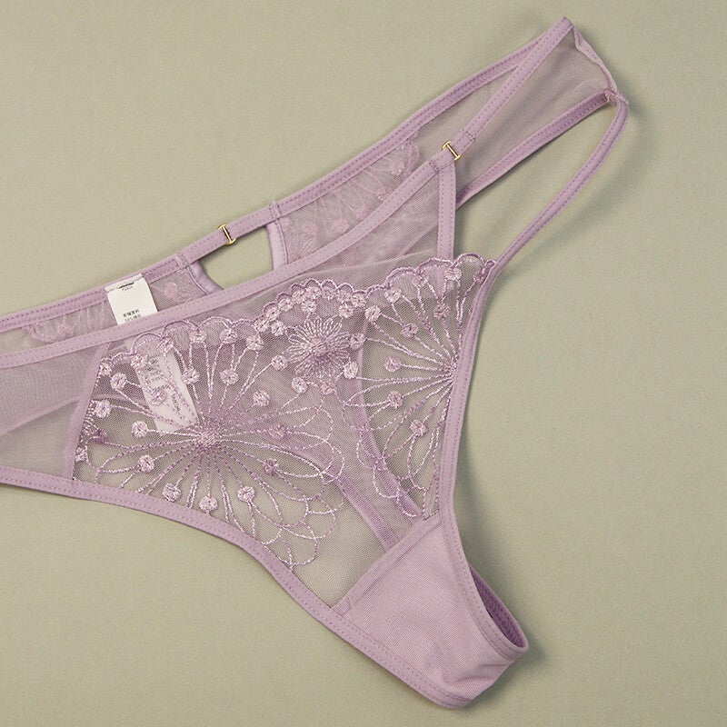 French Sexy Ultra-Thin Embroidered Lace Cotton Crotch Butt-Lifting Low-Waist String