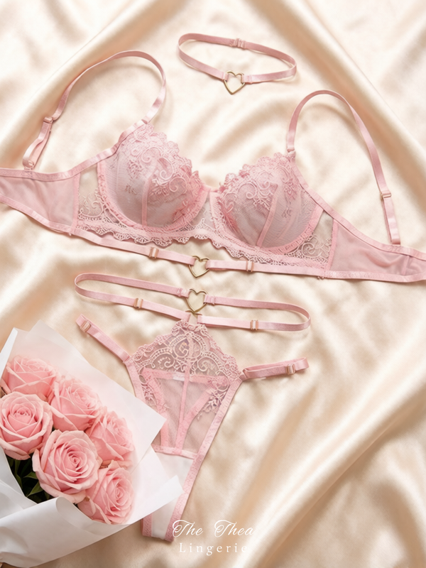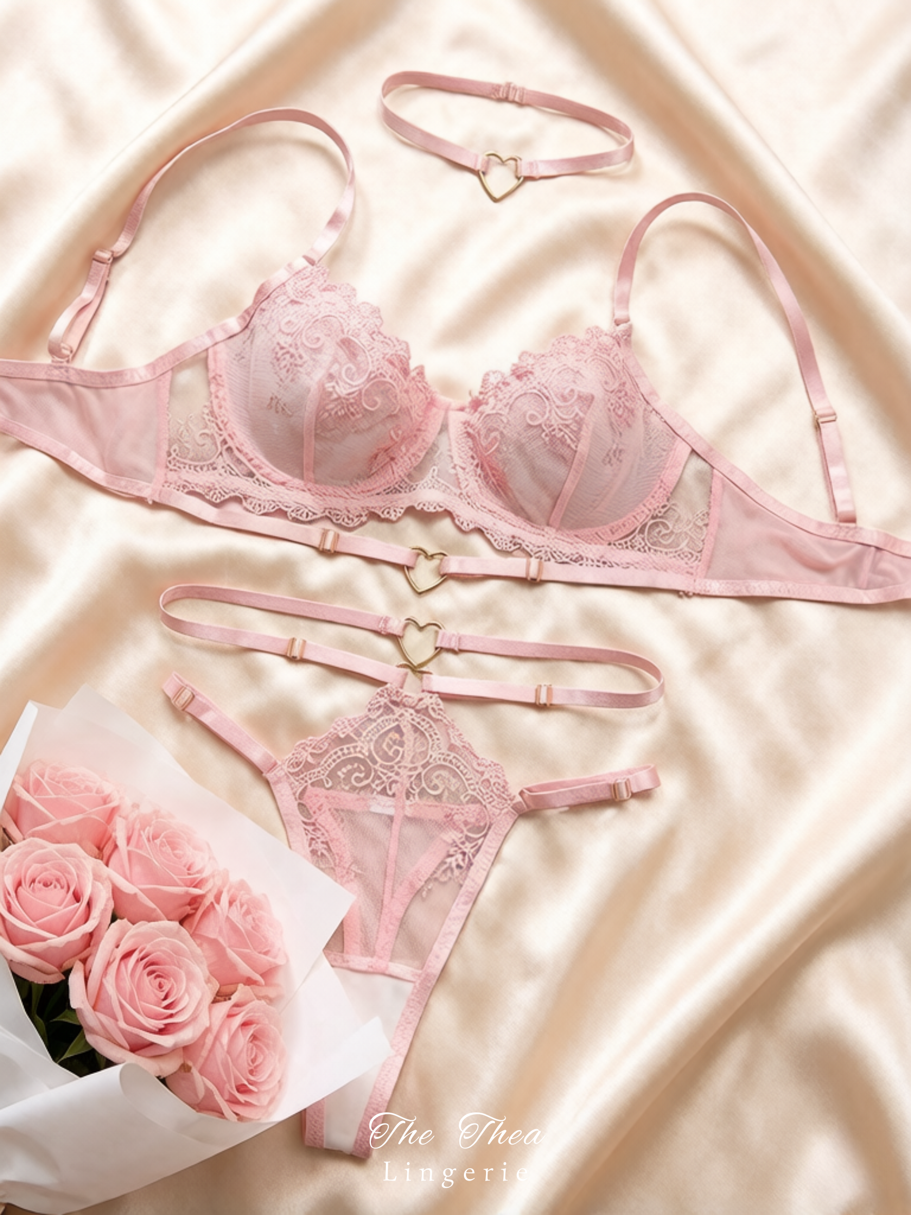Heart Shape Embroidered Sexy Push-Up Bra Set with Choker